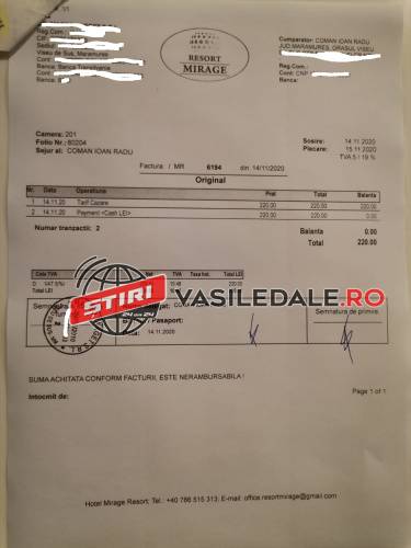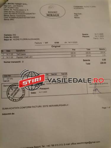De la Vișeu de Sus ne parvim informații și din tabară PNL. Aceștia susțin că primarul orașului nu se afla în restaurant. Consilierul județean Coman Radu ne-a transmis că are cazare la unitatea respectivă, anexând inclusiv o factură de achitare a camerei.