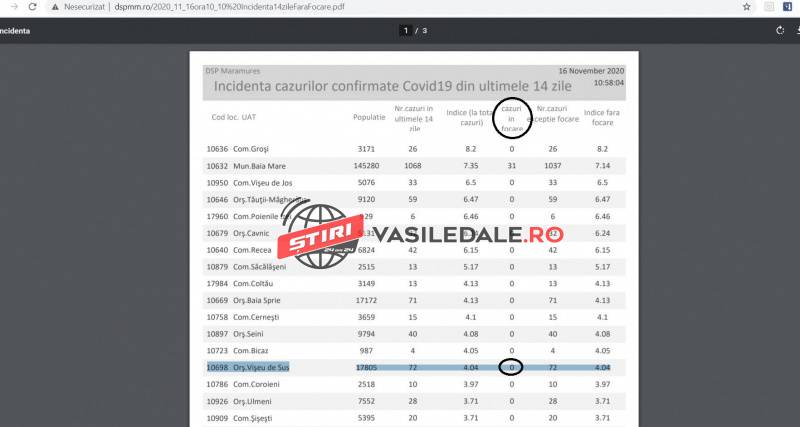 Culmea culmilor este altă: ieri DSP Maramureș a publicat incidența la 14 zile pe județul Maramureș. La Vișeu de Sus în ultimele 14 zile la focare apare: 0. Zero!!!! Deci cât mai poate minți incompententul de la DSP Maramureș. Se afundă în propriile minciuni! Instituția respectivă a ajuns să își bată joc de oameni zi de zi, fără încetare. Nu este oare NIMENI să îi taie crapa de sub picioare Dumnezeului Maramureșului?