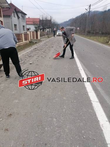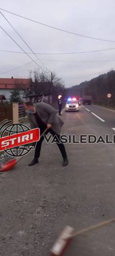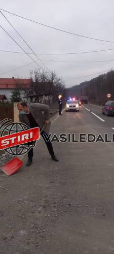 La fața locului s-a intervenit cu un utilaj iar viceprimarul Marius Grad, alături de alți localnici, a pus mâna pe lopată pentru a degaja.