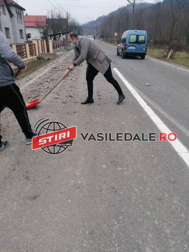 Ceilalți participanți la trafic au alertat poliția iar aceștia au cerut sprijinul Primăriei din Vișeu de Sus pentru a degaja piatra de pe șosea.