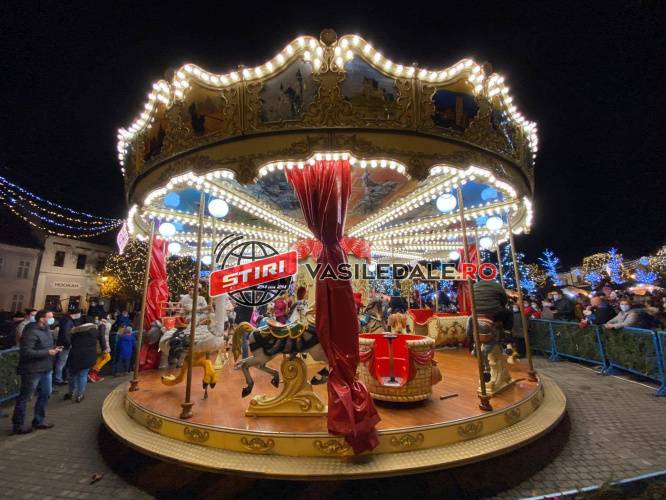 Lângă brad micuții se pot da gratuit într-un carusel, iar Moșul are căsuța lui.