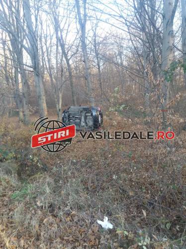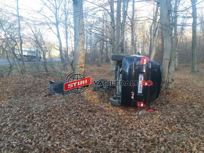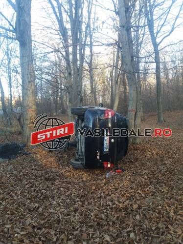 Un alt accident a avut loc pe DN18B, în zona fostului popas Regal – Groşi. Un şofer a pierdut controlul volanului într-o curbă şi s-a răsturnat în pădure.