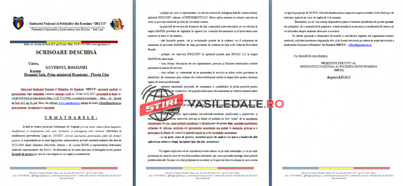 Subscrisul Sindicatul Național al Polițiștilor din România “DECUS”, persoană juridică cu personalitate legal dobândită conform sentinței civile nr. 39 din 10.01.2017, pronunțată în dosar nr. 15284/306/2016 al Judecătoriei Sibiu, C.I.F. 37127004, cu sediul în localitatea Sibiu, str. Școala de Înot, bl.3, ap.10, jud. Sibiu, site official www.snprdecus.ro, adresă de email: [email protected], prin prezenta vă aducem la cunoștință