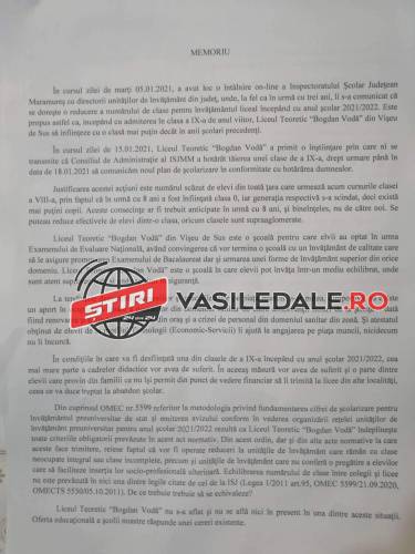 Vă redăm mai jos memoriul cu numărul de înregistrare 241 din 13 ianuarie 2021 înregistrat la ISJ Maramureș: