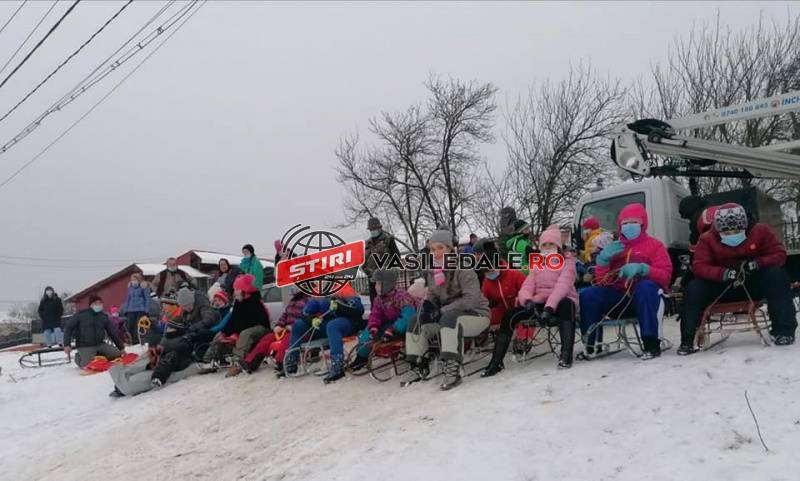 Spre seară, pârtia a devenit în premieră, luminată, spre bucuria copiilor, care au mai rezistat, să continue săniușul.