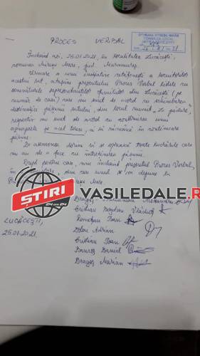 Întâlnirea de astăzi are ca principal scop convigerea oamenilor să dea înapoi și să accepte schimbarea destinației terenului. Doar că așa cum arată un proces-verbal încheiat în 25 ianuarie 2021 marea majoritate a acestora se împotrivesc. ”Urmare a unei inițiative cetățenești a locuitorilor acestui sat, atașăm prezentului proces verbal listele cu semnăturile reprezentanților familiilor din Lucăcești (pe număr de casă) care nu sunt de acord cu schimbarea destinației pășunii satului, din locul numit La pădure, respectiv nu sunt de acord cu construirea unui aquapark pe acel teren, ci să rămână în continuare pășune. De asemenea dorim să se oprească toate lucrările care nu au de a face cu întreținerea pășunii”. În total au semnat 99 de persoane.
