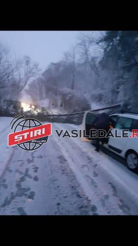 Drumarii intervin cu drujbele pentru înlăturarea acestora şi pentru redeschiderea traficului rutier.