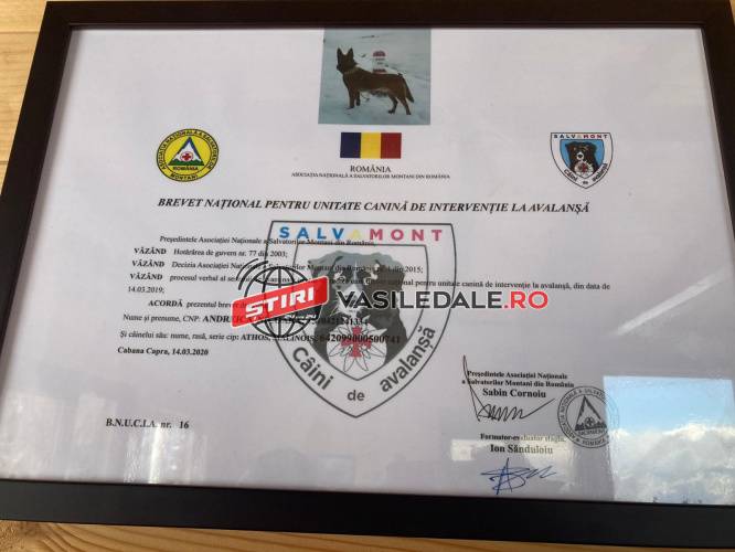 Unitatea canină de la Salvamont Borșa este formată din coordonator Nicoară Andreica și câinele Athos.