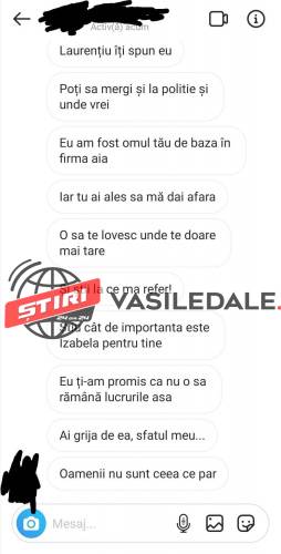 ”Laurențiu îți spun eu. Poți merge și la poliție și unde vrei. Eu am fost omul tău de bază în firma aia iar tu ai ales să mă dai afară. O să te lovesc unde te doare mai tare. Și știi la ce mă refer. Știu cât de importantă este Izabela pentru tine. Eu ți-am promis că nu o să rămână lucrurile așa. Ai grijă de ea, sfatul meu… Oamenii nu sunt ceea ce par” este unul dintre mesajele primite de tatăl fetei.