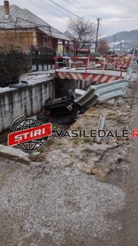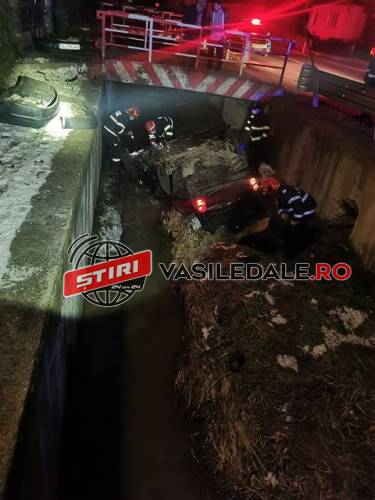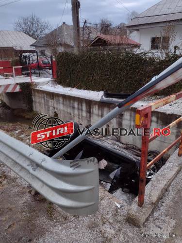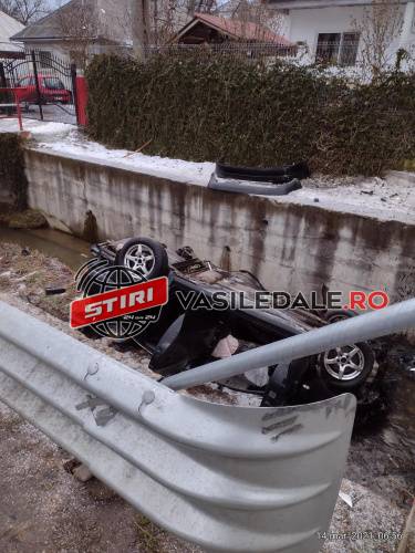 La un moment dat șoferul a pierdut controlul volanului și s-a răsturnat în pârâul care străbate localitatea.