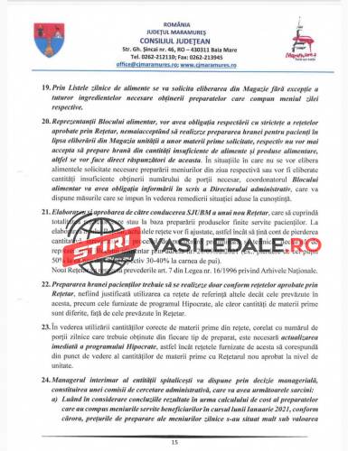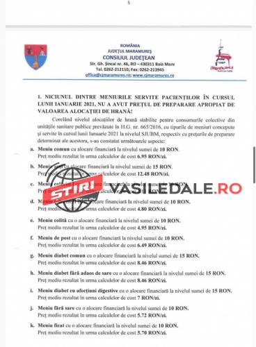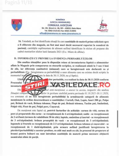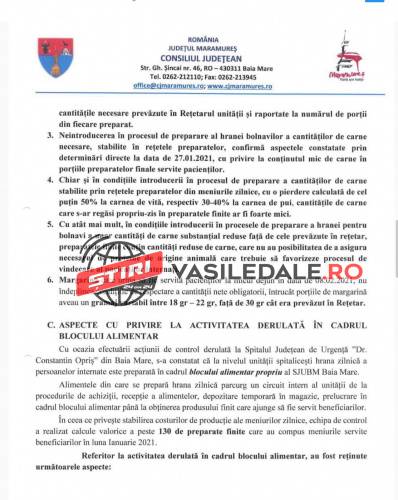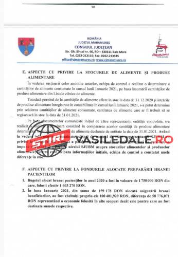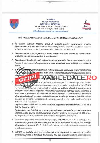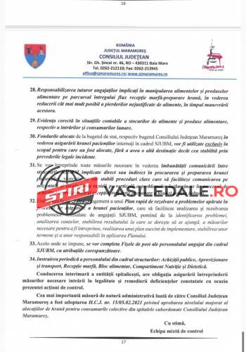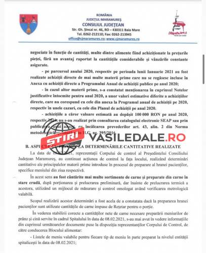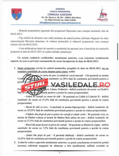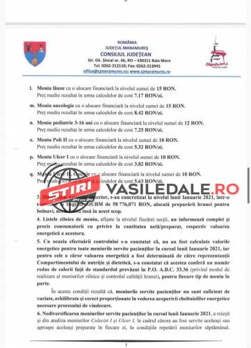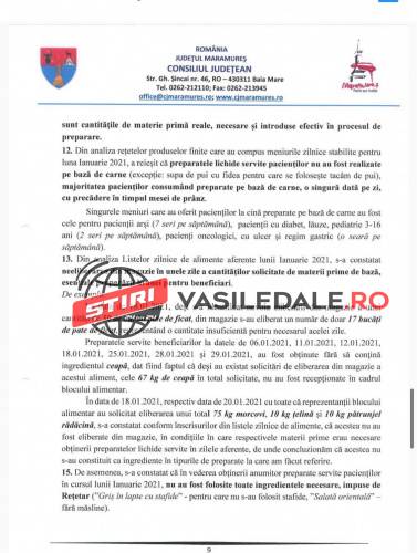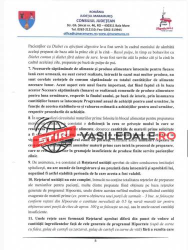 Raportul Corpului de control al președintelui Consiliului Județean Maramureș, solicitat de către jurnalista Mica Svab de la TL+, este unul cât se poate de revoltător. Așteptăm ca persoanele responsabile care au luat de la gura copiilor și bolnavilor, al căror meniuri și așa erau în valoare de numai 10 lei, să fie trași la răspundere legal. Pe românește, s-a furat de la gura copiilor bolnavi, dar și a celorlalți pacienți.