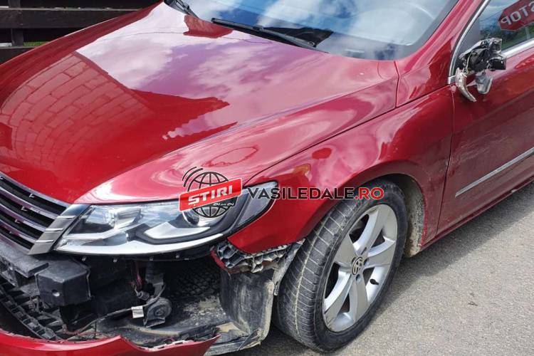 EXCLUSIV FOTO / VIDEO – Un tânăr a intrat cu mașina într-un utilaj agricol. Nu adaptase viteza într-o curbă periculoasă din Rona de Sus
