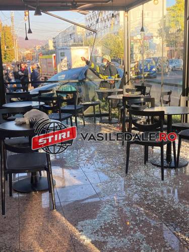 Accident în urmă cu câteva minute pe bulevardul București din Baia Mare. Un autoturism a ieșit de pe carosabil și a intrat efectiv în terasa restaurantului Bizo.