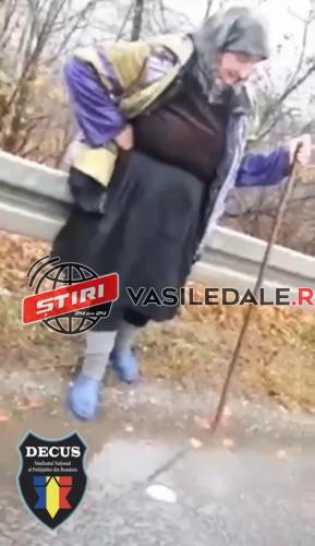Imaginile au fost surprinse de un polițist de frontieră din Poienile de Sub Munte, Alin Popan. Omul a zărit-o pe bătrânică în timp ce conducea autoturismul personal pe DN18. A oprit și s-a oferit să o ajute. A legat căruciorul improvizat în care era legat un lemn iar pe femeie a rugat-o să se urce în autoturism.