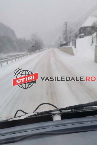 Trafic rutier in conditii de iarna. Zapada framantata cu grosimea de pana la 2 cm se gaseste depusa pe carosabilul sectoare de drumuri publice. Sunt tronsoane de drum pe care sub stratul de zapada framantata se gaseste gheata. Angajatii sectiei de drumuri nationale au intervenit cu 19 utilaje si au imprastiat 128 tone de material antiderapant. Pe sectoarele de drumuri judetene s-a actionat cu 36 de utilaje si s-au raspandit 351 tone de material antiderapant. Cerul este acoperit, ninge in judet. Vizibilitatea in trafic este buna, vantul prezinta intensificari temporare in zona inalta de munte, unde viscoleste ninsoarea si spulbera zapada. Sunt utilaje in trafic care actioneaza la deszapezire.