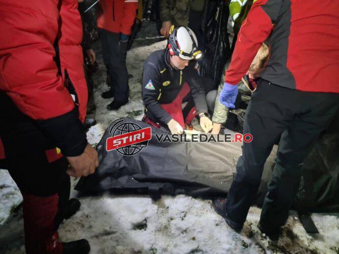 Agentiile participante la actiunea de cautare asteapta sosirea legistului dupa care salvatorii montani vor proceda la extragerea si transportul trupului barbatului decedat la echipajul IML.