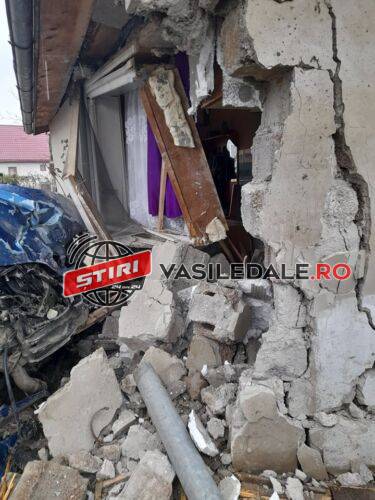 In urma impactului violent unul din peretii casei s-a prabusit. Proprietarii casei erau in interior in momentul producerii accidentului. Acestia s-au speriat insa, din fericire, au scapat teferi.