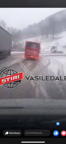 Pe DN 1C se circulă greoi, la această oră mai multe TIR-uri sunt blocate în Pasul Mesteacăn.