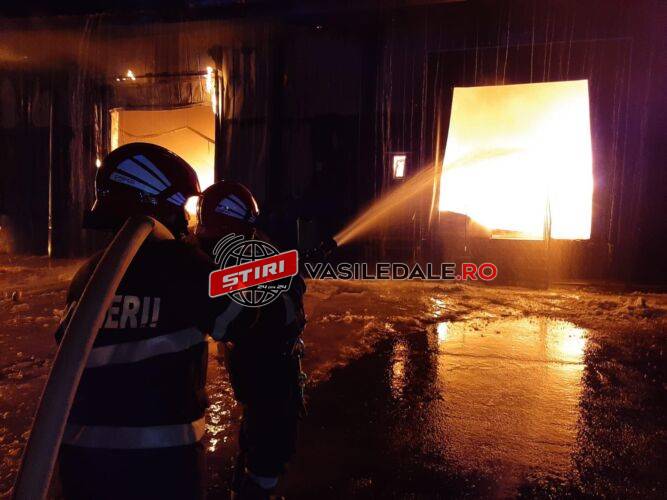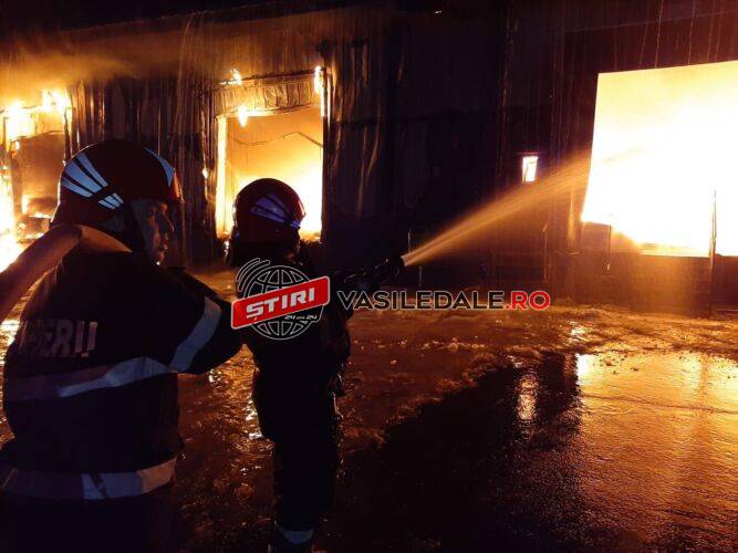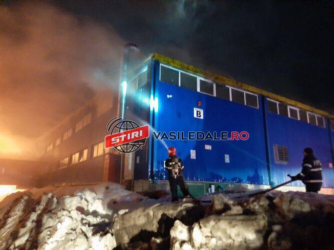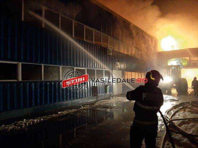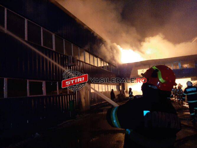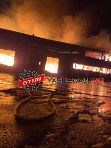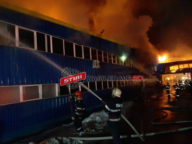 Incendiul a fost localizat. Se lucrează pentru lichidare. A fost afectată o hală de circa 12.000 mp. Nu sunt victime