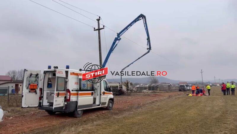 Incident grav la Cătălina. Doi muncitori au fost electrocutați după ce șoferul unei betoniere ar fi manevrat greșit autospeciala, a atins firele de la rețeaua de înaltă tensiune pe care le-a rupt.