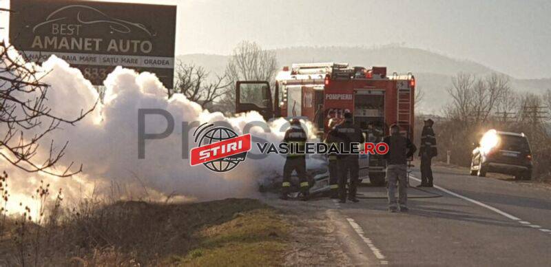 Un autoturism înmatriculat în județul Maramureș a luat astăzi, in jurul orei 17.00, foc pe Drumul National 19, la intrare in comuna Vama din județul Satu Mare.