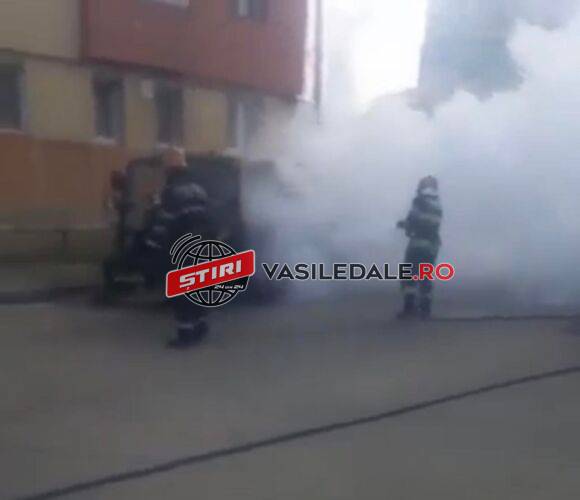 EXCLUSIV VIDEO: Un utilaj care spăla străzile din Baia Mare a luat foc pe strada Melodiei