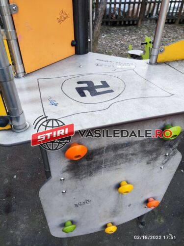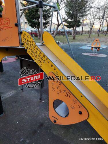 Acolo mobilierul din parcului destinat pentru distracția micuților a fost pur și simplu inscripționat cu semnul svasticii naziste.