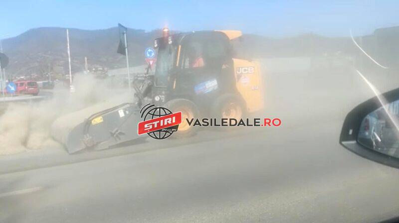În loc să înainteze cu viteza melcului și poate să folosească ceva apa pentru a spăla materialul antiderapant aruncat în perioada de iarnă, șoferul utilajului conducea de parcă abia aștepta să iasă din schimb. În urma lui s-a ridicat un nor de praf care a învăluit minute bune zona prin care a trecut.