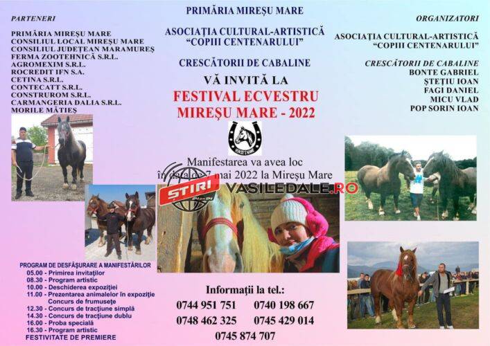 ”A fost o zi minunată la Festivalul Internațional Ecvestru Mireșu Mare. Transmitem mulțumiri Asociației Copiii Centenarului, partenerilor și tuturor acelora care ne-au fost alături la organizarea evenimentului. Au fost prezenți peste 400 de cai din toată țara și din afara României, de la ponei până la caii cei mai grei” a transmis primarul comunei Mireșu Mare, ing. Ioan Mătieș.