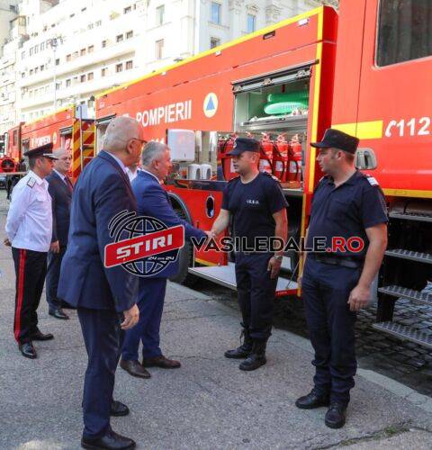 Astăzi, 10 autospeciale de stingere cu capacitatea de 10.000 de litri de apă, din totalul celor 200 de același tip, care vor fi achiziționate în cadrul Proiectului VIZIUNE 2020, completează parcul auto al inspectoratului general.