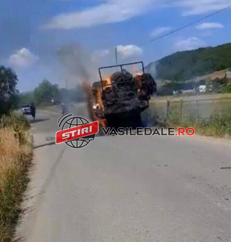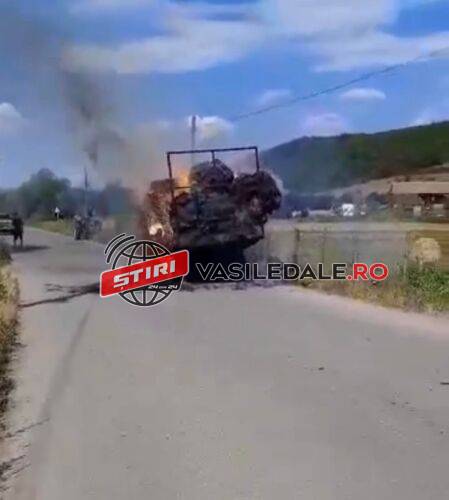 Focul a fost stins însă remorca și fânul au fost mistuite de flăcări. Deocamdată nu se cunoaște cauza izbucnirii focului.