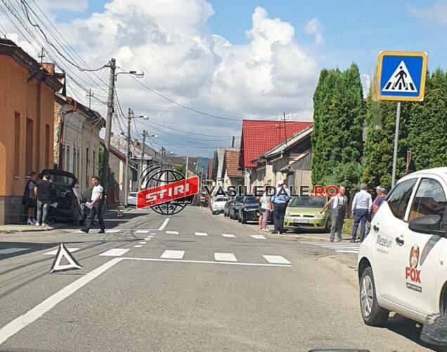 EXCLUSIV FOTO: Începător la volan în Sighetu Marmației – A evitat un pieton pe zebră și a ajuns cu mașina pe trotuar apoi într-o casă
