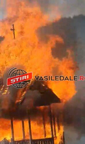 Un incendiu dezastruos s-a produs azi la Ieud. A luat foc altarul de vară al bisericii Plopşor.
