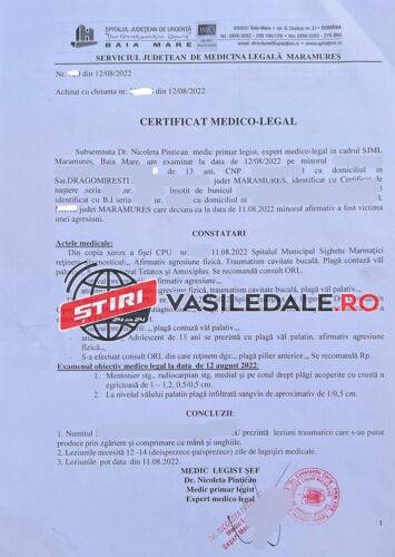 Din discuțiile purtate cu reclamanta a reieșit faptul că, în jurul orei 22.00, nepotul acesteia în vârstă de 13 ani din Dragomirești, aflându-se în fața unui magazin din oraș, a fost agresat fizic de către un bărbat de 41 de ani din oraș. Minorul a fost transportat la Centrul de Permanență Dragomirești în vederea acordării de îngrijiri medicale.