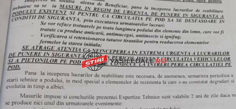 În luna aprilie am comandat o expertiză, iar aceasta a fost finalizată și pentru reabilitarea integrală a podului ar fi necesară suma de 25 milioane lei, aproximativ. Cea mai mare parte de bani, adică 13 milioane lei, ar merge către lucrări la pragul de fund. Am înștiințat Prefectura, Consiliul Județean și Guvernul României. Am inițiat și un proiect de hotărâre de Guvern pentru alocarea acestor bani din fondul de rezervă al Guvernului, pentru reabilitarea în regim de urgență a acestui pod. Așteptăm acum viitoarele ședințe de Guvern să intre pe ordinea de zi. În luna august am trimis acest proiect” – a spus primarul Vasile Moldovan.