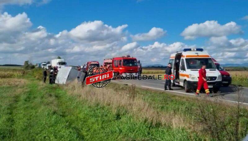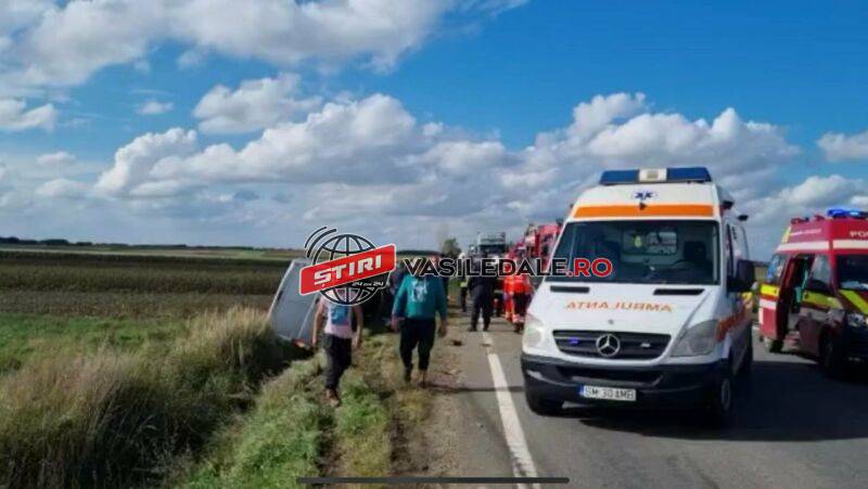 Potrivit primelor informații, șoferul autoturismului a virat la stânga și nu s-ar fi asigurat corespunzător, intrând în coliziune cu microbuzul, al cărei șofer a intrat în depășire.