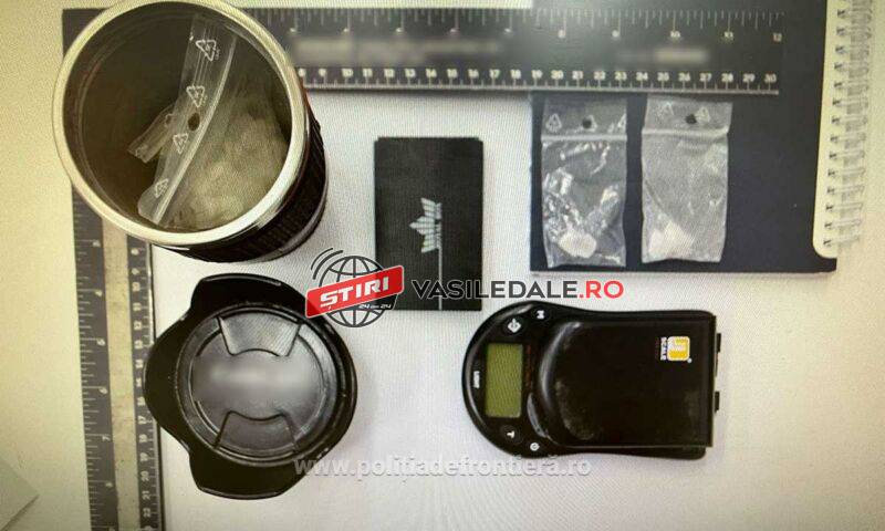 Și în acest autoturism, polițiștii de frontieră au descoperit într-un termos 2 pliculete, iar asupra pasagerului alte 2 pliculețe, care conțineau o substanță albă cristalină, precum și o substanță vegetală de culoare verde oliv, cu miros înțepător, posibil substanțe interzise. Pe timpul legitimării, tânărul pasager a aruncat pe geam autoturismului un obiect care la fel, conținea reziduri de substanță albă, iar în buzunarul stâng al pantalonului polițiștii de frontieră i-au găsit și un cântar de precizie care conținea aceleași reziduri de substanță albă.