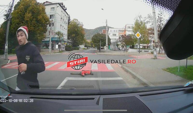 Imagini incredibile au fost surprinse aseară de camera de bord a unui autoturism pe o stradă din Baia Mare. Un tânăr ce avea o pe cap o căciulă de Moș Crăciun, aflat cel mai probabil sub influența substanțelor etnobotanice, ataca pur si simplu autoturismele care treceau prin zonă.