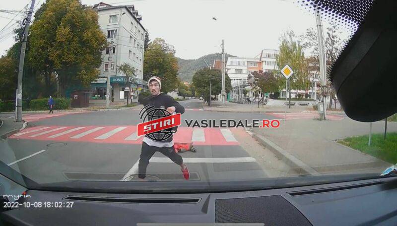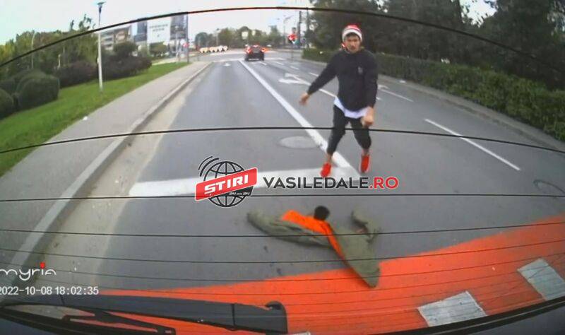Individul se dezbrăca de geacă, o arunca pe jos și nervos gesticula și înjura participanții aflați în trafic. Din fericire, în momentul în care a fost înregistrat video individul nu a lovit autoturismul aflat în trafic, ci doar a avut această intenție.