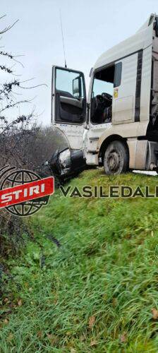 Accident rutier la Lucăceşti, azi la ora 14.10. Un TIR cu numere de Sălaj a intrat pe contrasens într-o curbă periculoasă și a lovit un autoturism pe care l-a aruncat în șanț. Din fericire nu sunt victime. Un al doilea TIR a intrat în primul, doar masca fiindu-i afectată.