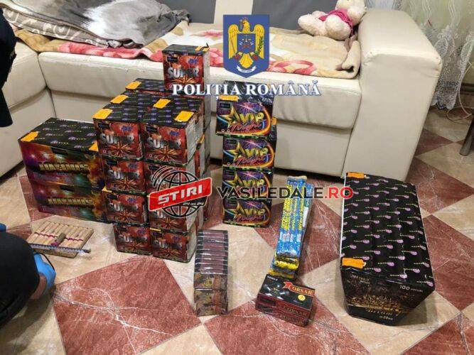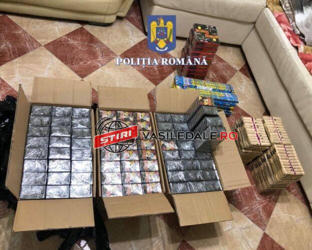 În urma perchezițiilor au fost identificate aproximativ 300 kg de articole pirotehnice din categoriile P1, F2, F3, F4, în valoare totală de aproximativ 30.000 de lei, 2009 pachete de țigări de proveniență DUTY FREE în valoare de 32.144 lei.
