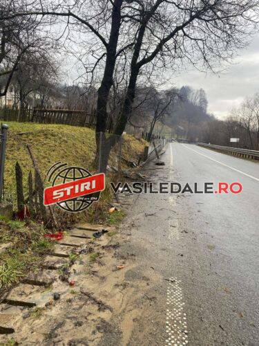 Șoferul acestuia a ieșit de pe șosea, a distrus un gard, a lovit un copac, apoi s-a rostogolit pe șosea oprindu-se pe plafon. Deși autoturismul a fost distrus complet, cel de la volan a scăpat teafăr.