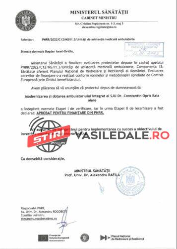 Proiectul privind “Reabilitarea, modernizarea, extinderea şi dotarea cabinetelor din ambulatoriile de specialitate din cadrul Spitalului Judeţean de Urgență Dr. Constantin Opris Baia Mare” a fost aprobat pentru finanţare prin PNRR, valoarea proiectului fiind de 19,8 milioane de lei.