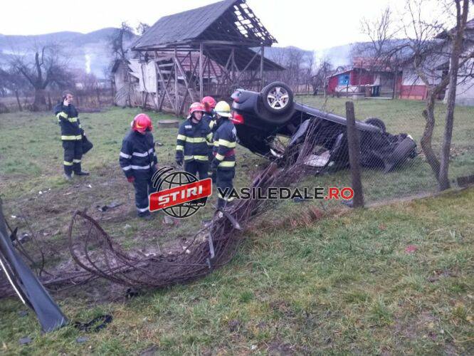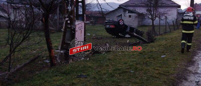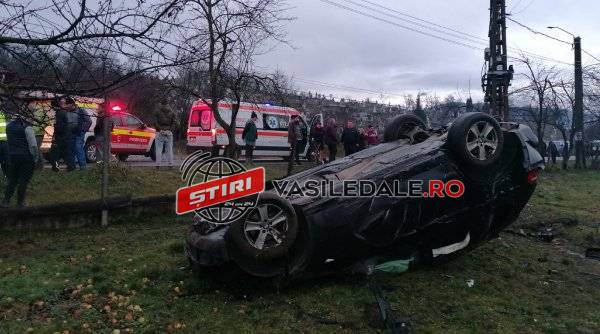 O șoferiță s-a răsturnat cu mașina după ce a făcut o depășire interzisă, a pierdut controlul volanului și a lovit o mamă cu un copil de 7 ani, în Rugășești, județul Cluj.
