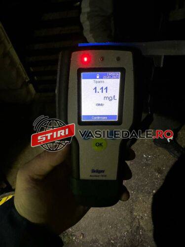 Bărbatul de 35 de ani a fost testat cu aparatul etilotest, rezultând o concentrație de 1,11 mg/l alcool pur în aerul expirat, fiind condus la Spitalul Orășenesc Negrești-Oaș pentru a-i fi prelevate mostre biologice, în vederea stabilirii cu exactitate a gradului de alcoolemie.