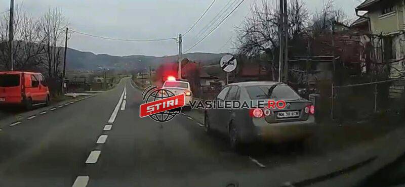 Doar că din sens opus se apropia o autospecială a poliției. Agentul de poliție aflat la volan a frânat pentru a evita impactul. Imediat polițistul a pornit girofarurile și semnalele acustice și a pornit după șoferul autovehiculului respectiv. Nu a mers prea mult deoarece atât șoferul aflat în depășire, cât și cel depășit opriseră deja în afara părții carosabile, bănuind exact ce se va întâmpla.