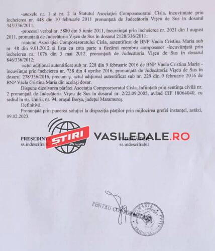 -anexele nr. 1 și nr. 2 din Statutul Composesoral Cisla, încuviințate prin încheierea nr. 448 din 10 februarie 2011 pronunțată de Judecătoria Vișeu de Sus în dosarul 343/336/2011;