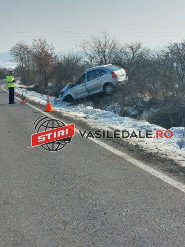 Un singur autoturism este implicat în accident, acesta ieșind de pe șosea în decor. Echipajele medicale de prim ajutor, EPA SMURD și Ambulanță, sunt la fața locului.