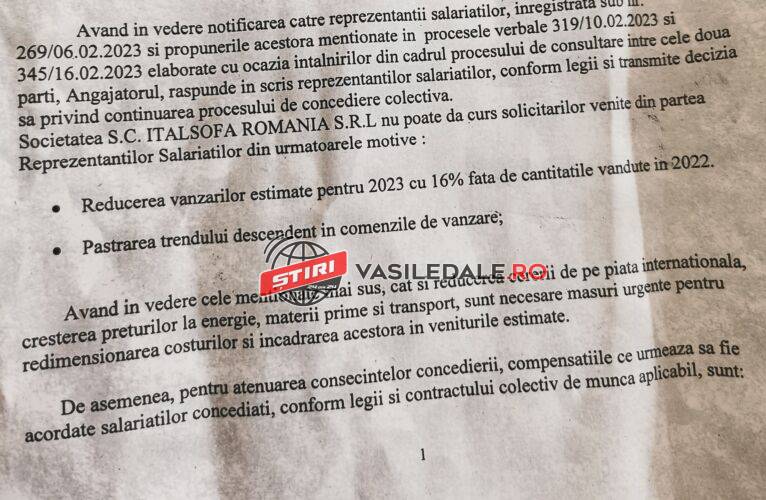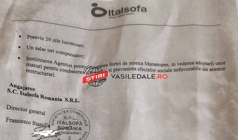 EXCLUSIV DOCUMENTE: Concedieri la ITALSOFA Baia Mare – 100 de oameni vor fi trimiși în șomaj. Motivele: scăderea comenzilor și creșterea prețului la energia electrică