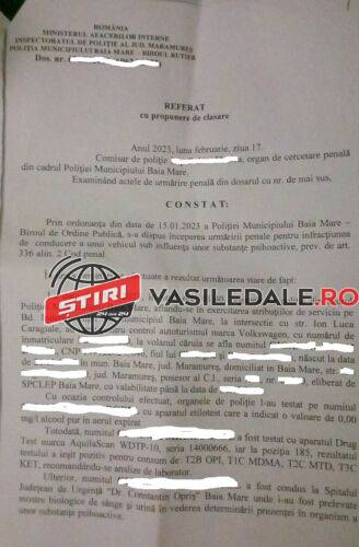 ”La data de 15.01.23 în jurul orei 1.40 organele de poliție din cadrul Poliției Municipiului Baia Mare, aflându-se în exercitarea atribuțiilor de serviciu pe bd Independenței din Baia Mare, la intersecția cu strada Ion Luca Caragiale, au oprit pentru control autoturismul marca VW, la volanul căruia se afla… un băimărean de 26 ani. Cu ocazia controlului efectuat, organele de poliție l-au testat pe numitul… cu aparatul etilotst care a indicat o valoare de 0,00 mg/l alcool pur în aerul expirat.